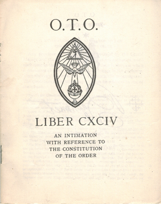 Ordo Templi Orientis (Hrsg.): Liber CXCIV. An Intimation with Reference to the Constitution of the Order. Privately printed by the O.T.O., [Berkeley] o.J. [um 1982]. 4 Bl. OBroschur.