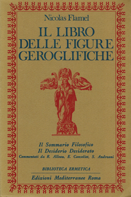 Il libro delle figure geroglifiche. (Il sommario filosofico. Il desiderio desiderato). Edizioni Mediterranee, Roma 1986. Preceduto da un’Introduzione di René Alleau. E da uno Studio storico su Nicolas Flamel di Eugène Canseliet. E seguiti da una postfazione di Stefano Andreani. Traduzione dell’originale francese di Barbara Turco. 192 S., 2 Bl. Vlgs.-Anz. illustr. OKarton.