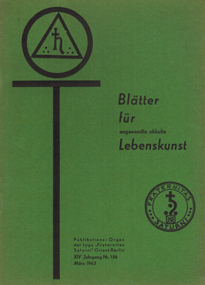 Blätter für angewandte okkulte Lebenskunst. XIV. Jahrgang, Nr. 156. Herausgegeben (als Privatdruck) von Gregor A. Gregorius. Meister der Loge Fraternitas Saturni Orient Berlin, Berlin 1963. 8°. S. 33-48. OKarton.