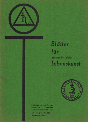 Blätter für angewandte okkulte Lebenskunst. XIV. Jahrgang, Nr. 162. Herausgegeben (als Privatdruck) von Gregor A. Gregorius. Meister der Loge Fraternitas Saturni Orient Berlin, Berlin 1963. 8°. S. 131-146. OKarton.
