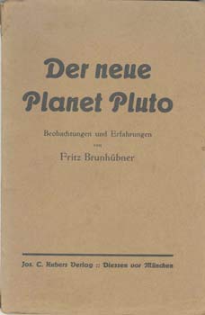 Brunhübner, Fritz: Der neue Planet Pluto. Beobachtungen und Erfahrungen. Diessen vor München, Jos. C. Hubers Vlg. 1935. Gr.-8°. Mit 1 Porträt, Textfig. u. 1 Tab. 138 S. OKart.