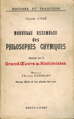 D’Yge, Claude: Nouvelle assemblée des philosophes chymiques. Aperçus sur le grand-Œuvre des Alchimistes. Dervy-Livres, Paris 1972. Gr.-8°. Ouvrage illustré de trois planches hors texte. Préface d’Eugène Canseliet. 233 S., 2 Bl., 1 (w) OKarton.