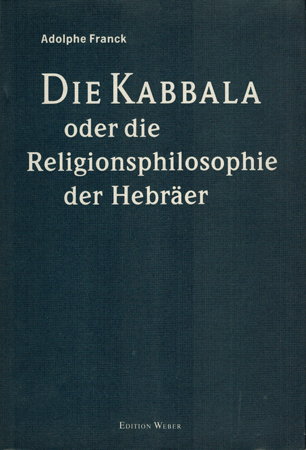 Franck, Adolphe: Die Kabbala oder die Religions-Philosophie der Hebräer. Edition Weber, Amsterdam 1990. Gr.-8°. Aus dem Französischen übersetzt, erweitert und überarbeitet von Adolf Jellinek. Bibliographisch überarbeitet und mit einem Nachwort versehen von A.K. Offenberg. Mit einer Abbildung (als Frontispiz). XIX, 285 S., 3 Bl. OLwd. mit Rückengoldprägung und OUmschlag.