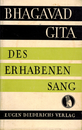 Bhagavadgita. Des Erhabenen Sang. Eugen Diederichs Verlag, Düsseldorf-Köln 1959. 31.-35. Tausend. Übertragen von Leopold von Schroeder. 98 S., 1 Bl. OLwd. mit Rückengoldprägung und OUmschlag.