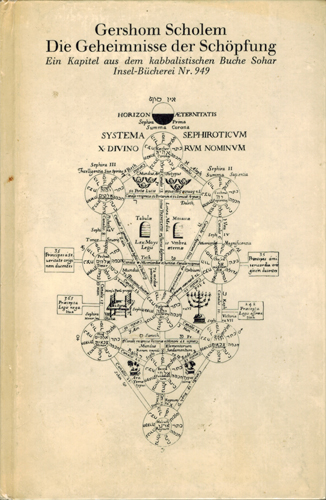 Scholem, Gershom: Die Geheimnisse der Schöpfung. Ein Kapitel aus dem kabbalistischen Buche Sohar. Insel Verlag, Frankfurt am Main 1971. Erste Auflage. 105 S., 1 Bl. illustr. OPp.