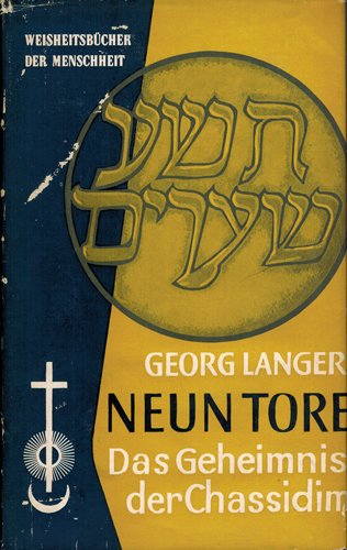 Langer, Georg: Neun Tore. Das Geheimnis der Chassidim. Otto Wilhelm Barth Verlag, München-Planegg 1959. Aus dem Tschechischen übersetzt von Dr. Friedrich Thierberger. Einleitung von Professor Dr. Gershom Scholen, Jerusalem. 181 S., 1 Bl. OLwd. m. Rückenprägung und OUmschlag.