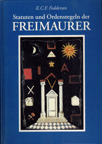 Feddersen, Klaus C. F.: Constitutionen : Statuten und Ordensregeln der Freimaurer in England, Frankreich, Deutschland und Skandinavien. Panorama Verag, Wiesbaden o. J. Gr.-8°. Herausgegeben von der freimaurerischen Forschungsvereinigung Frederik der Grossen Landesloge der Freimaurer von Deutschland. 782 S., 1 [w] illustr. OPp.