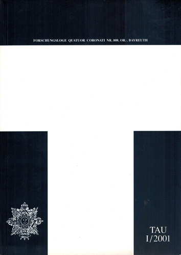 TAU. Zeitschrift der Forschungsloge Quatuor Coronati. Nr. I/2001. Selbstverlag der Freimaurerischen Forschungsgesellschaft Quatuor Coronati e. V., Bayreuth 2001. Gr.-8°. Herausgegeben von Prof. Dr. Hans-Hermann Höhmann. 112 S. OKarton.