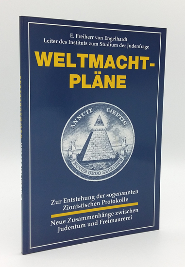 Engelhardt, E. Freiherr von: Weltmachtpläne. Zur Entstehung der sogenannten Zionistischen Protokolle. Neue Zusammenhänge zwischen Judentum und Freimaurerei. O.V., o.O. u. o.J. [um 2000]. 103 S. illustr. OKarton.