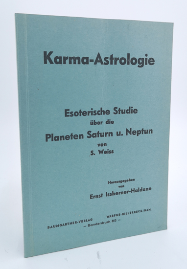 Weiss, S.: Karma-Astrologie. Esoterische Studie über die Planeten Saturn und Neptun. Baumgartner Verlag, Warpke-Billerbeck o.J. [um 1956]. Herausgegeben von Ernst von Issberner-Haldane. 56 S. OKarton.