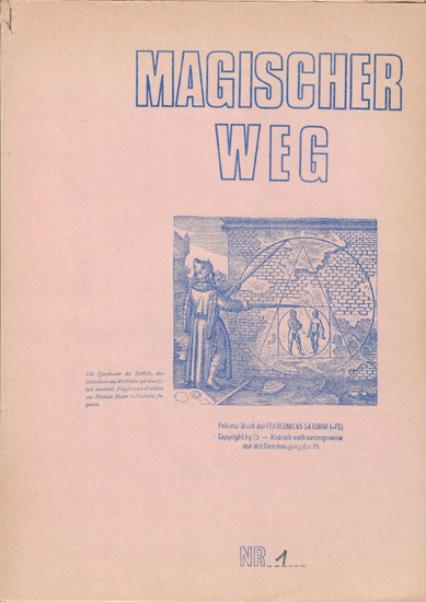 Fraternitas Saturni Hrsg.): Magischer Weg Nr. 1. Privater Druck der Fraternitas Saturni, o.O. u. o.J. [Frankfurt am Main / Neu Isenburg, ca. 1973]. 4°. 20 S., 1 Bl. (Übungsplan). Loseblattwerk, geklammert.