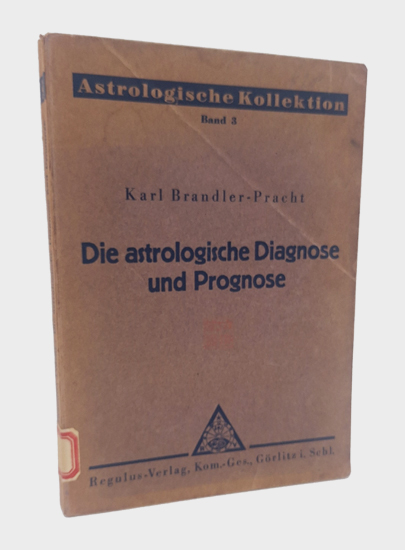 Brandler-Pracht, Karl: Die astrologische Diagnose und Prognose. Die Interpretation des Horoskops. Regulus Verlag, Bohneberg & Co., Görlitz 1938. 25.-30. Tausend. IX. Auflage. 249 S., 3 Bl. Vlgs.-Anz. OKarton.