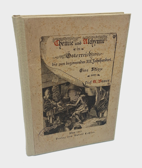 Bauer, Prof. A[lexander Anton Emil]: Chemie und Alchymie in Österreich bis zum beginnenden XIX. Jahrhundert. Eine Skizze. Verlag Rudolf Lechner, Wien 1883. Mit Textabbildungen und einer doppelblatt gr. Tafel. IV, 85 S. Priv. Leinenband mit aufgezogener OBroschur.