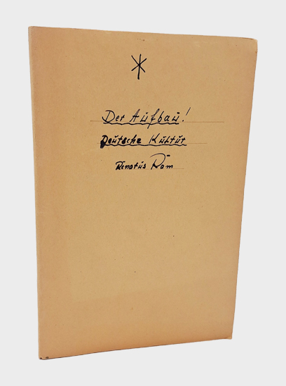 Renatus Ram (Ps.) = Paul Wilhelm Albert Köthner: Die Elemente Deutscher Kultur. Zweites Buch: Das Buch vom Aufbau. Verlagsangaben überklebt mit: Schaffer-Verlag, Bergdorf bei Hamburg [1920]. Gr.-8°. 101, [1] w. S. Priv. Karton.