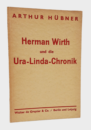 Hübner, Arthur: Herman Wirth und die Ura-Linda-Chronik. Walter de De Gruyter & Co., Berlin und Leipzig 1934. 40 S., 1 Bl. OKarton.