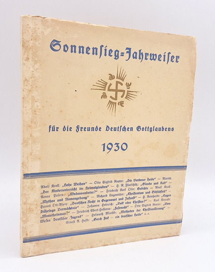 Posern, Horst (Hrsg.): Sonnensieg-Jahrweiser 1930 für die Freunde Deutschen Gottglaubens. Edelgarten Verlag Horst Posern, Freiberg in Sachsen [1929]. 104, [13] S. Vlgs.-Anz. Illustr. OKarton.