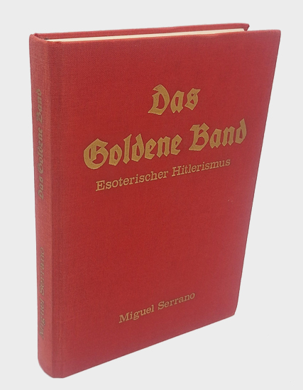 Serrano, Miguel (Ps.) = Miguel Joaquín Diego del Carmen Serrano Fernández: Das goldene Band. Esoterischer Hitlerismus. Teut-Verlag Richard Schepmann, Wetter 1987. Deutsche Übersetzung: F. Urtho. 416 S. OLeinwand-Band mit goldgeprägtem Rückentitel und Deckelgoldprägung.