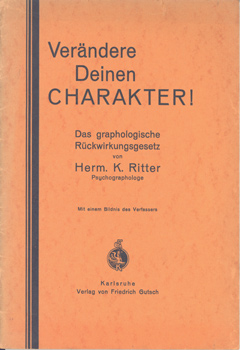 Ritter, Herm. K.: Verändere Deinen Charakter! Das graphologische Rückwirkungsgesetz. Verlag von Friedrich Gutsch, Karlsruhe o.J. (1929). Mit einem Bildnis des Verfassers. 25 S., 1 Bl. OKart.