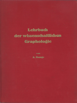 Runge, A.: Lehrbuch der wissenschaftlichen Graphologie zugeschnitten für das praktische Leben. Selbstverlag des Verfassers, Landgut Hochwiesl bei Passau 1935. Gr.-8°. 145 S., 1 (w) goldgepr. OLwd.