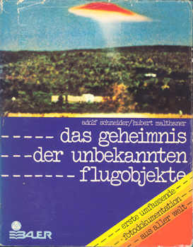 Schneider, Adolf u. Hubert Malthaner: Das Geheimnis der unbekannten Flugobjekte. Erste umfassende Fotodokumentation aus aller Welt. Hermann Bauer Verlag, Freiburg im Breisgau 1976. 279 S. OLwd. mit OUmschlag.