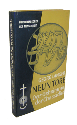 Langer, Georg M.: Neun Tore. Das Geheimnis der Chassidim. Otto Wilhelm Barth-Verlag, München-Planegg 1959. Aus dem Tscheschichen übersetzt von Dr. Friedrich Thierberger. Einleitung von Professor Dr. Gershom Scholem. 181 S., 1 Bl. (Inhalt) OLwd. mit OUmschlag.