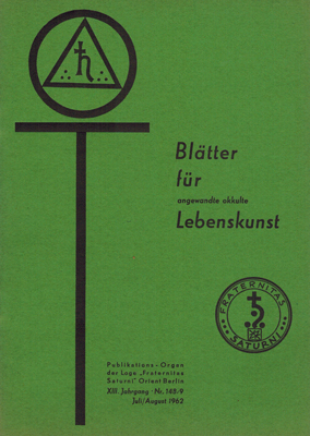Blätter für angewandte okkulte Lebenskunst. XIII. Jahrgang, Nr. 148/149. Herausgegeben (als Privatdruck) von Gregor A. Gregorius. Meister der Loge Fraternitas Saturni Orient Berlin, Berlin 1962. 8°. S. 76-94. OKarton.